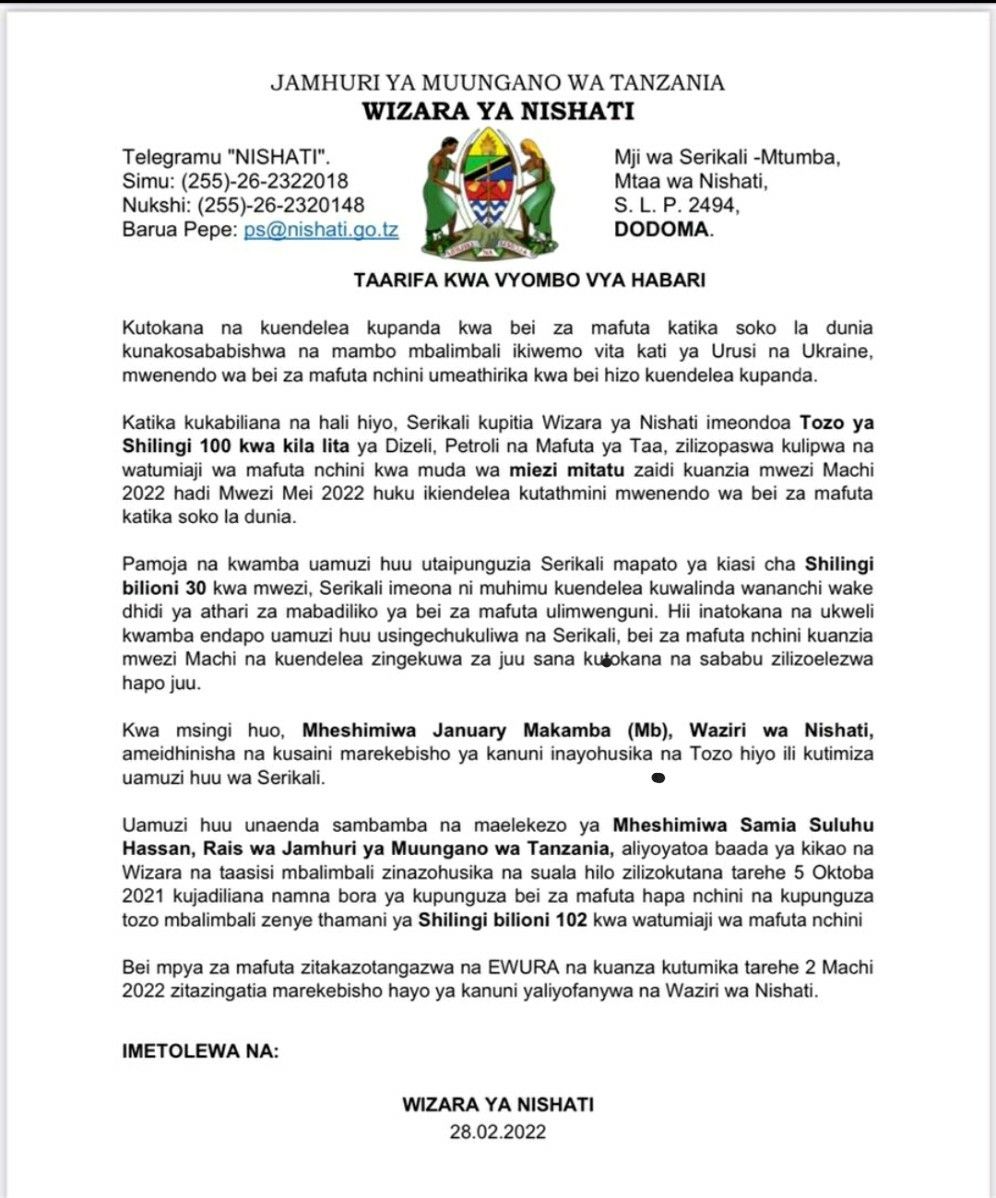 Read MoreThe Government has removed petroleum fee amounting to TShs100 per...
